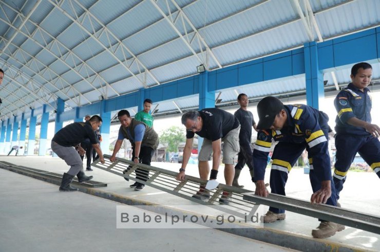 Goblog Online – PANGKALPINANG – Penjabat (Pj) Gubernur Kepulauan Bangka Belitung (Kep. Babel) Ridwan Djamaluddin, melakukan gotong royong membersihkan area Pelabuhan Perikanan Pantai (PPP) atau Tempat Pelelangan Ikan (TPI) Muara Sungai Baturusa Ketapang, Pangkalpinang, Jumat (21/10/2022).